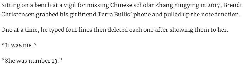 在集会现场,看着这么多为章莹颖而来的善良人,看着章莹颖悲痛欲绝的家人,Christensen 终于忍不住炫耀起了自己的罪行:
