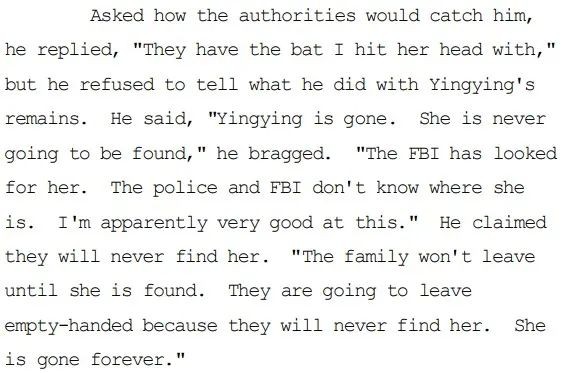 而令这对传统的中国父母更无法接受的是,凶手Brendt Christensen始终不肯交代莹颖的尸体在哪里。