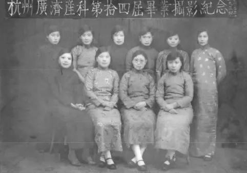 1934年周瑶琴(前排右二)于杭州广济助产职业学校毕业照