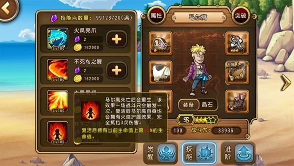 马尔高死亡后会发动“转生之苍炎”技能,从而完成重生。虽然该效果一场战斗只会触发一次,但复活后的马尔高自身会拥有火焰护盾效果,完全抵挡3次伤害,堪称逆转战局之神技。