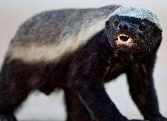 蜜獾是集智力、胆量、勇气、速度于一身的小型哺乳动物,被称为是“兽类中的屌丝”,“世界上最无所畏惧的动物”及“永不言弃的战斗机”。蜜獾”号称动物界的扛把子,人送外号“平头哥”;因为平头哥性格偏执、暴躁,这种性格直接的行为就是不记仇,因为他有仇立马就报复了!一部记录片曾经这样解说:这个蜜獾正在铁网下打洞,然后去铁网那边找狮子打架!打架的原因是因为铁网那边的狮子看了它一眼。。。