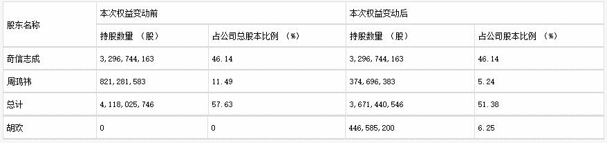 三六零今日发布公告:实控人周鸿祎已完成向胡欢转让其持有的公司股份共计 4.47 亿股,上述股份转让已在中国证券登记结算有限责任公司上海分公司完成过户登记手续,并取得中国证券登记结算有限责任公司出具的《过户登记确认书》。