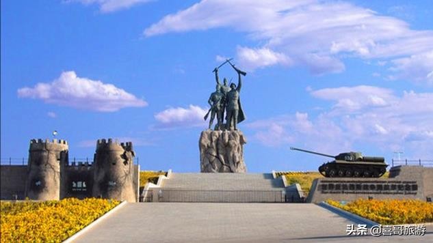 【世界反法西斯战争海拉尔纪念园】位于内蒙古呼伦贝尔市海拉尔区陈巴尔虎旗陈旗宝日希勒镇301国道。海拉尔要塞由5个主阵地和4个辅助阵地组成,以敖包山和北山阵地为主体。军事工事在修建过程中,日本关东军从中国内地抓来数万名劳工,工程结束后,为保守军事机密,关东军将劳工全部杀害,海拉尔河北岸“万人坑”内的嶙嶙白骨就是铁证。