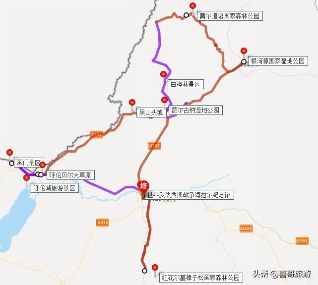 3、内蒙古呼伦贝尔十大景点自驾游行程安排: