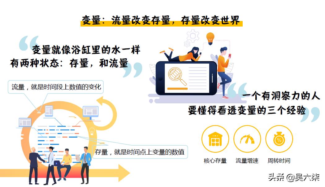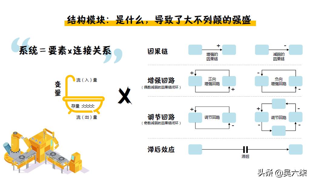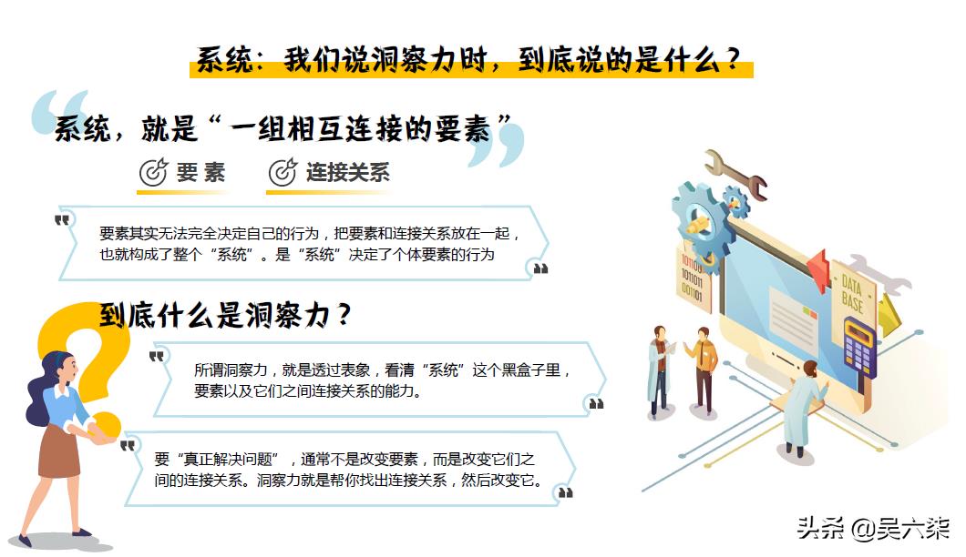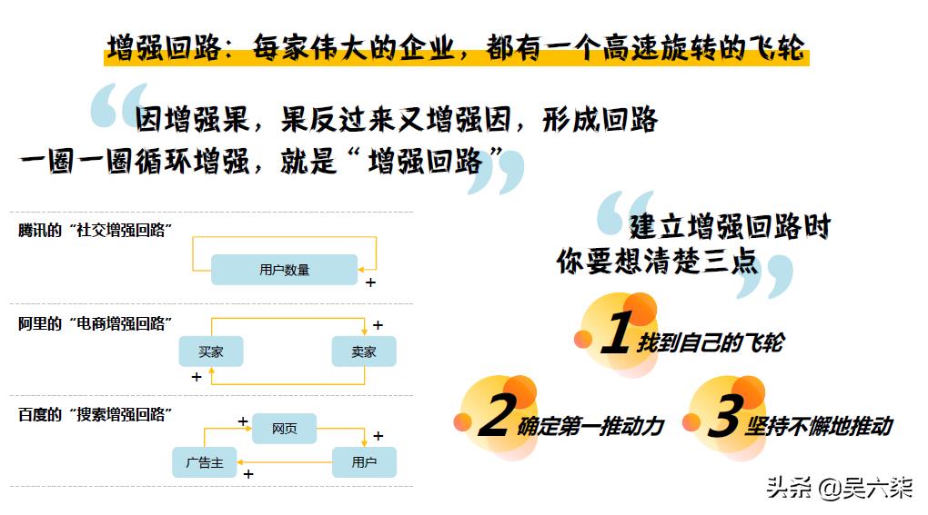 例如,上图所说的将自己看做一个系统,找到自己的飞轮,做对5件事(找到核心存量、增强回路、调节回路以及承认滞后效应),就可以使自己这个系统高效运转并收益颇丰。