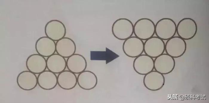 1.左图中的三角形,如何通过移动其中的三个圆圈,得到右图中的三角形?