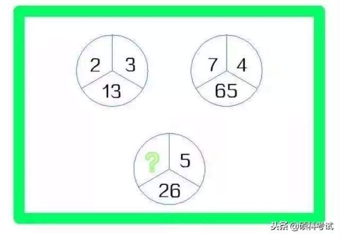 5.下面的3个圆中都填了数字,3个圆的规则是一样的,能否找出他们之间的规律,然后把最后一个圆中空缺的数字填上吗?