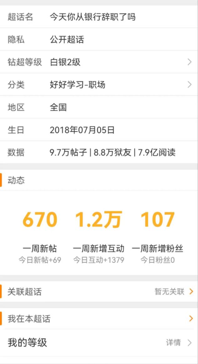 被她当成精神支撑的微博超话社区叫做 " 今天你从银行离职了吗 ",目前成员高达 8.8W,帖子有 9.7W,里面全都是银行员工们精神崩溃的现状,他们把银行称作监狱,同行为狱友,从银行离职才是 " 越狱成功 "。