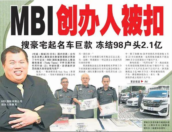 当时,执法组冻结了 "MBI" 集团相关的 98 个银行户头,涉及款额超 2 亿林吉特。