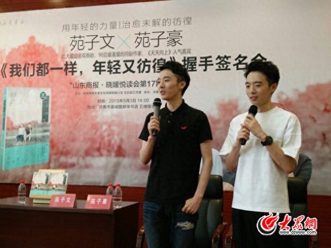 苑子文苑子豪兄弟合著的新作《我们都一样,年轻又彷徨》5月3日在济南泉城路新华书店举办握手签名会活动。