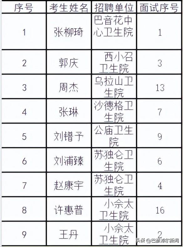 按照《乌拉特前旗2025年度医疗卫生专业技术人员校园招聘(第二场)公告》要求,经报名、资格审查、面试、体检、考察、选岗等环节,确定了9名拟聘用人员,现公示如下: