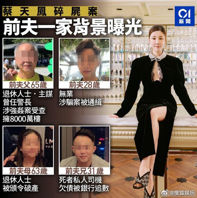 杀害蔡天凤的是她的前夫邝某一家,目前案件已经涉及5名嫌疑人,除邝某外,还包括邝某的哥哥、父亲、母亲和邝某父亲的情妇。