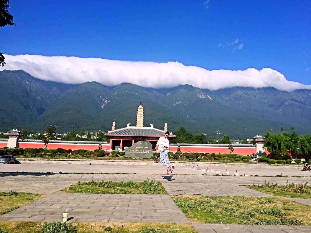 背景是崇圣寺三塔,再往后,是苍山,最美的,是苍山上,像棉花糖一样白白软软的趴在山上,可爱极了。