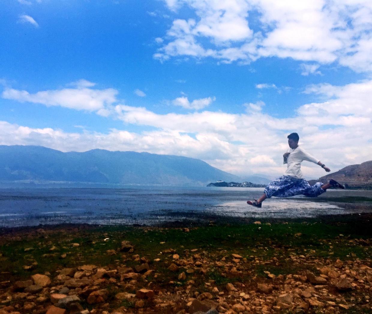 边上就是洱海,我们对着空无一人的环海路,大身的叫喊着。