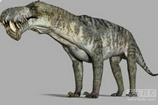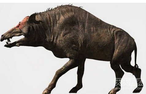 它看上去像科幻电影《生化危机》中的僵尸狗,它的体形接近于熊,长着锋利的犬齿,头骨3英尺长。霸王狗是狼蜥兽类中体形最大的物种,犬齿长度可达到4英寸。