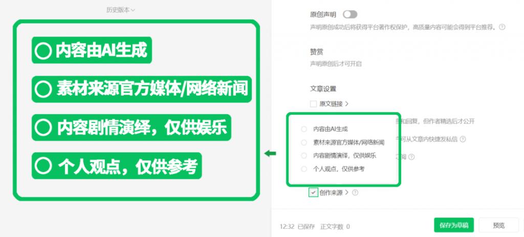 微信绿色、安全的平台生态离不开广大 " 自媒体 " 创作者的共同构建,为进一步规范 " 自媒体 " 创作行为,加强对不实信息的治理,根据《关于加强 " 自媒体 " 管理的通知》(以下简称《通知》)要求," 自媒体 " 创作者应主动对发布内容进行规范标注。