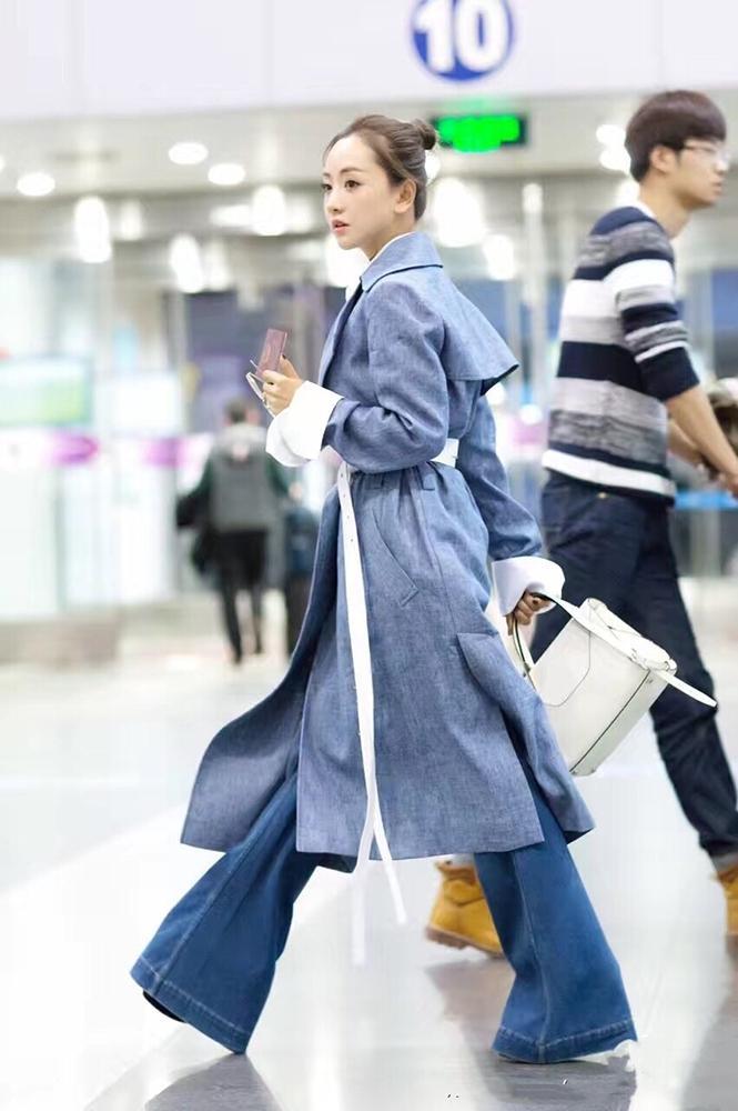 这不,杨蓉女神现身机场,身穿蓝色风衣,过膝的设计既起到了保暖的作用,而且很显高,颇有小清新的感觉,减龄十足,腰上系一条白色皮带,可以说是非常有亮点的穿搭了,既突出了时髦,又有瘦腰的效果,很有风度,搭配一条同色系喇叭裤,提高了整体服装的艺术品味,拖地的设计穿出了双脚失踪的感觉,妥妥的时尚达人。