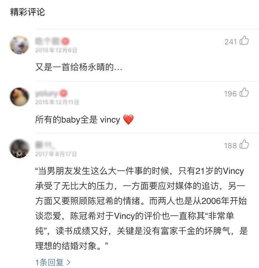 (陈冠希歌曲评论区,杨永晴英文名叫Vincy)
