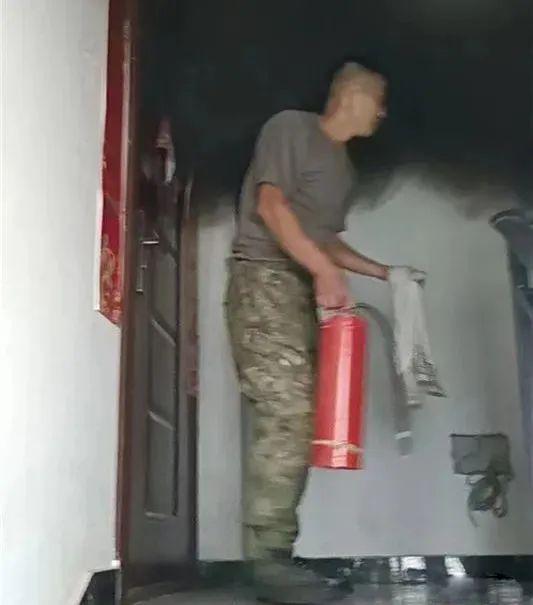 耿斌斌拿起家里的灭火器便跃出房门