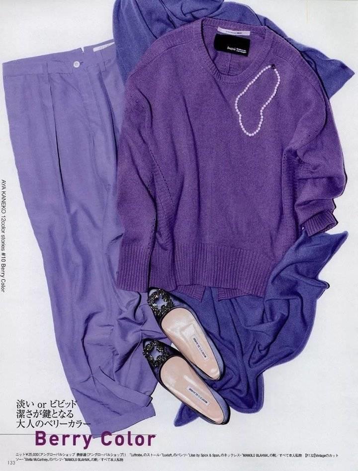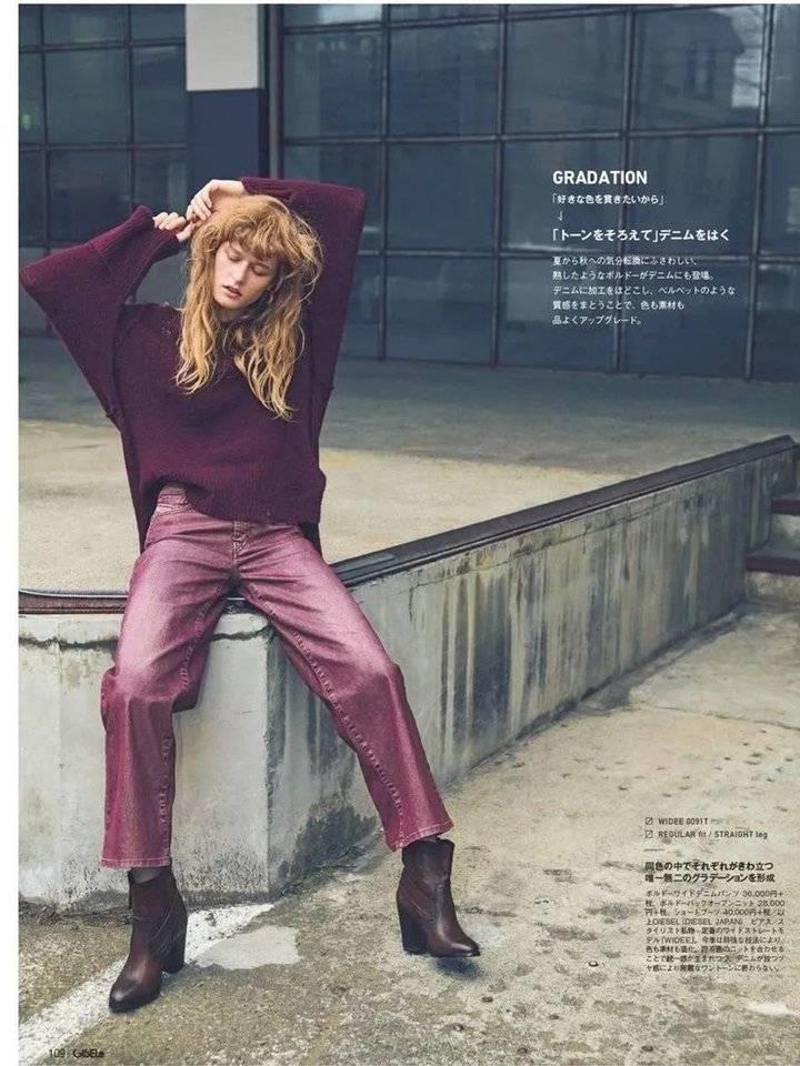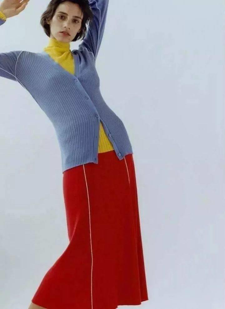 一身同色首先在色彩搭配上,突破了基础款毛衣的单调。同色系还能改变毛衣材质的质感。这是色彩引起的视觉错觉,组合效应,提升气场。