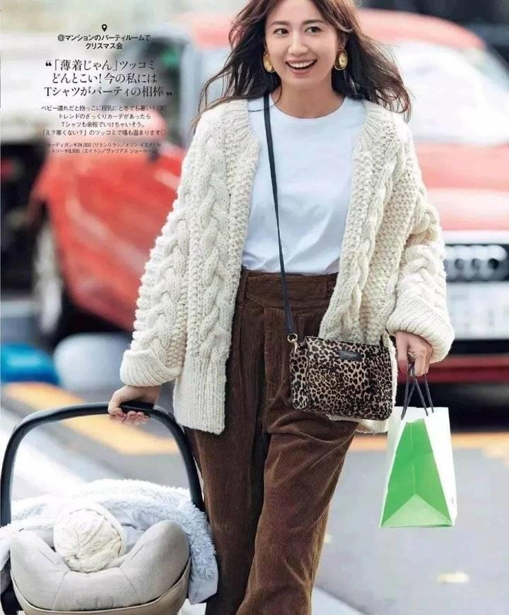 大骨架可以穿粗棒针开衫,把扣子敞开,内搭突出曲线,穿法随意一些,接受自然状态。