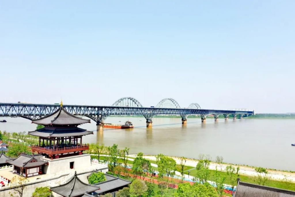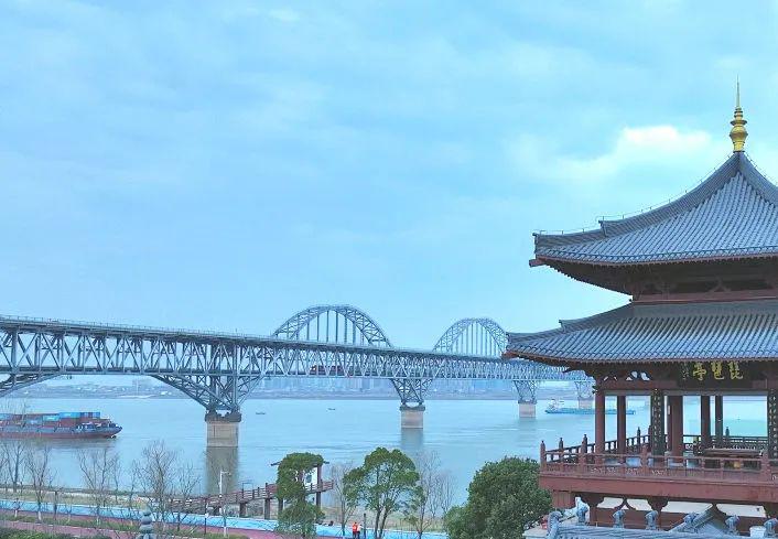 登亭怀古,追思琵琶韵事,细赏长江大桥。高铁与长江之滨的亭台楼阁对话,激起 " 相逢何必曾相识 " 的千古共鸣。