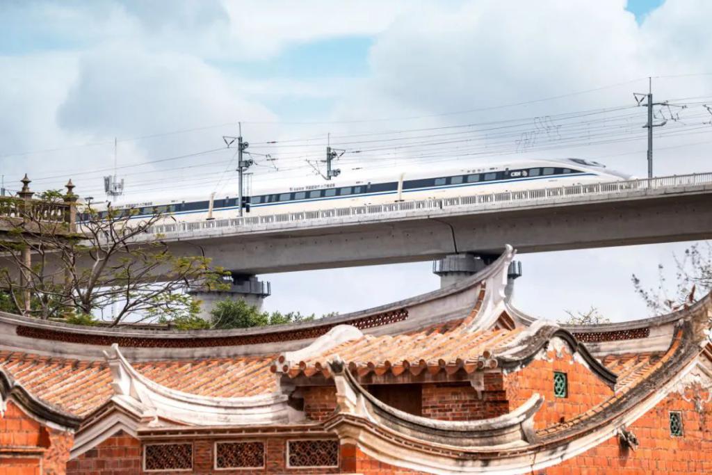穿梭在福厦高铁线上的钢铁游龙与龙型彩灯相望,与红砖白石的闽南古厝对话,道出浓浓思乡情和拳拳赤子心,凝结着侨胞的家国情怀。