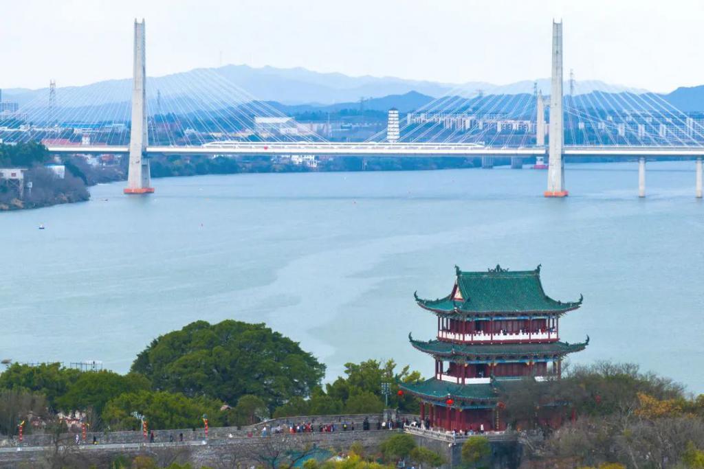 高铁列车从赣江特大桥上飞驰而过,与走过千年风霜的历史明楼八境台对话,在赣江北去的百舸争流景观中,讲述着一座赣州城的半部宋代史。