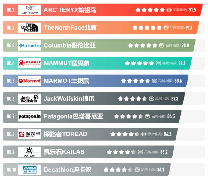 冲锋衣越来越受时尚界欢迎,细数品牌指数排名前五!