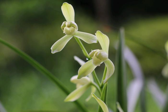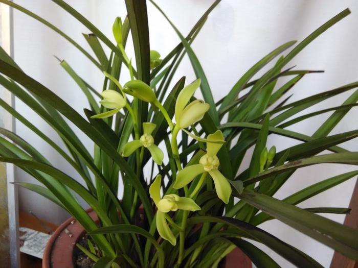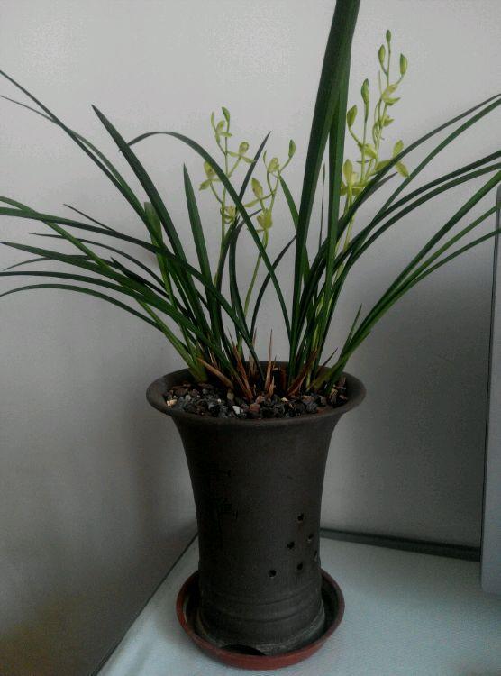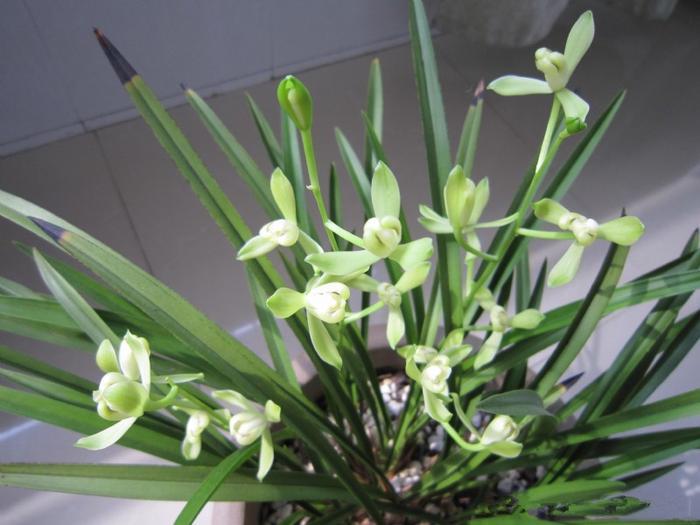 铁骨素梅属于建兰四季兰,理论上养护得当可一年四季都开花,一般夏季季节开花,有时冬春也开花,花量很大,成年植株单次花期可同时着花剑数十枚,每支花剑上开花5-8朵,一开就是一大簇,很是壮观。其花香清纯,是建兰中花香最好闻的,花开时刻,置于室内,一卉能熏一室香。