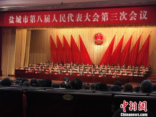 25日,盐城市第八届人民代表大会第三次会议闭幕。图为会议现场。于从文 摄
