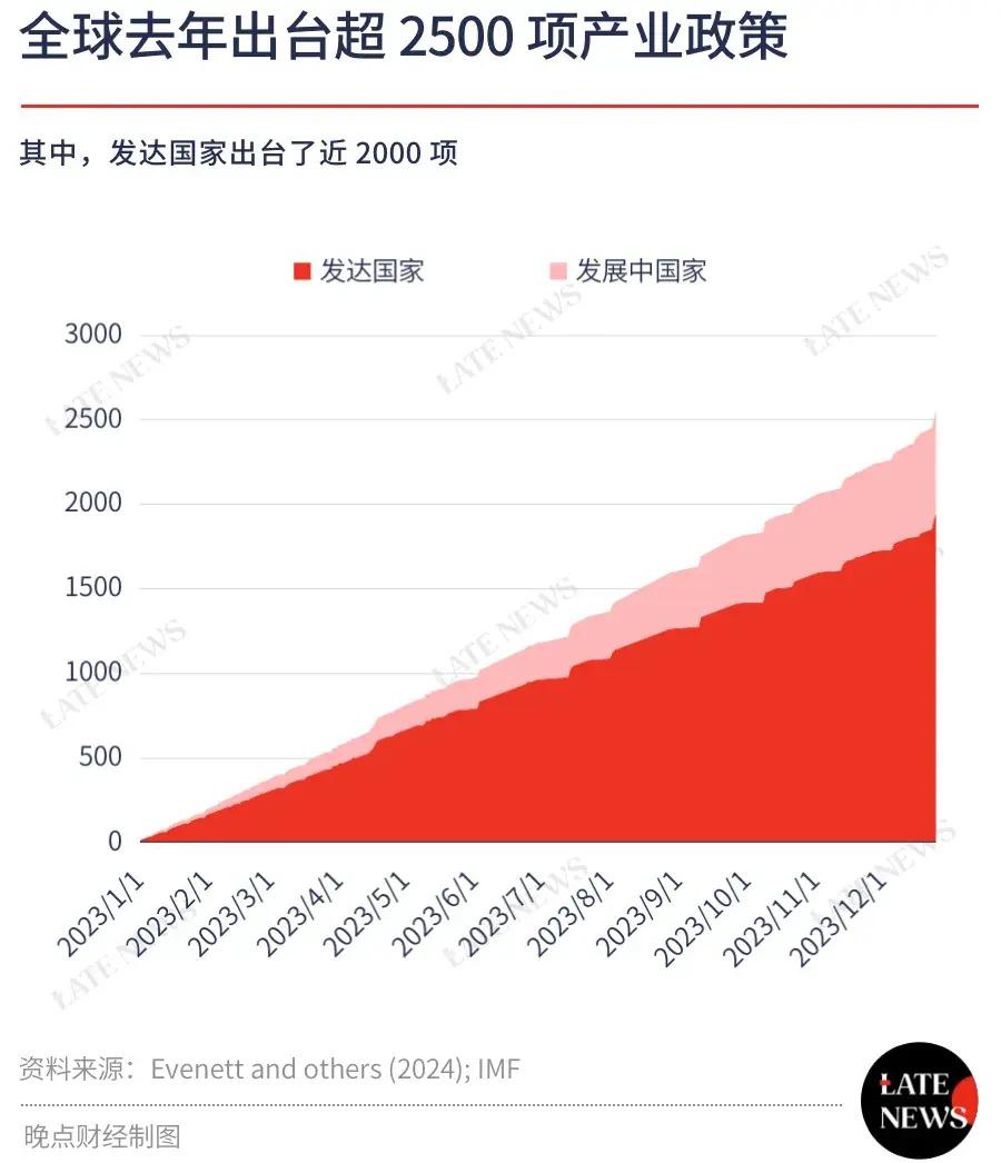 国际货币基金组织(IMF)最新的一项研究指出,去年各国政府出台了超过 2500 项产业政策,数量大约是 2025 年的三倍。其中,大部分产业政策是由发达国家推出,而补贴则是最常用的手段。