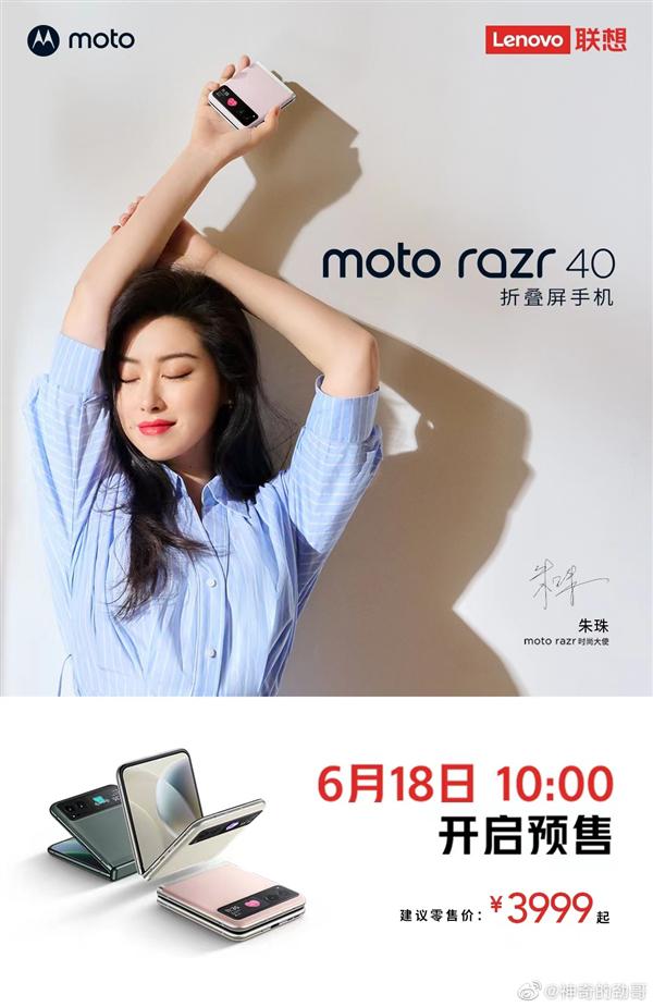 快科技 6 月 17 日消息,联想陈劲预告,moto razr 40 将于明天正式开启预售,起售价 3999 元,这是唯一一款不到 4000 元的小折叠屏手机,在同价位极具竞争力。