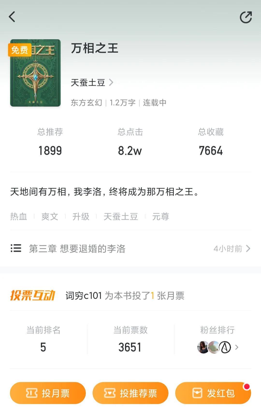 天蚕土豆新书《万相之王》已于四月十号在全网首发。