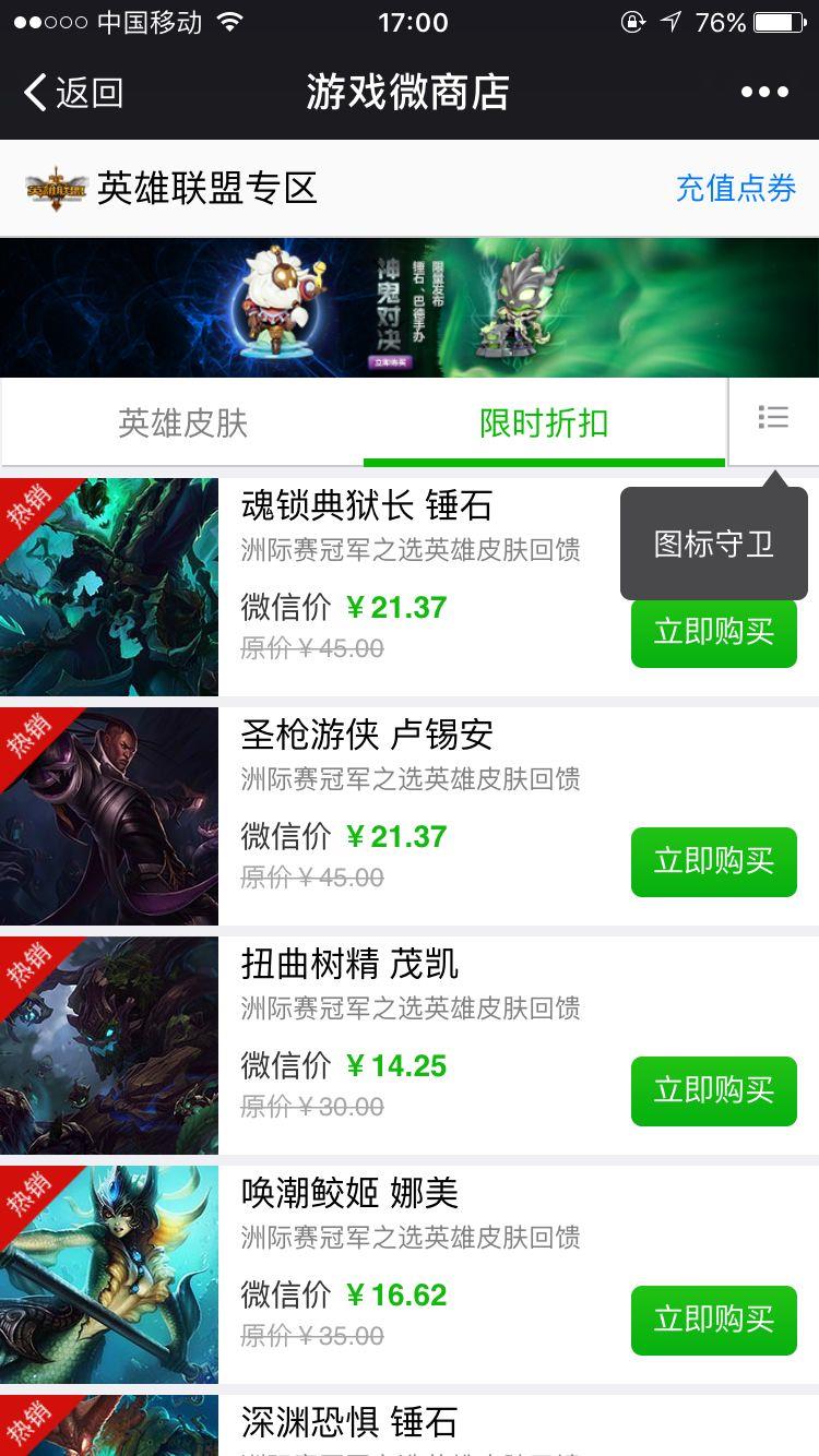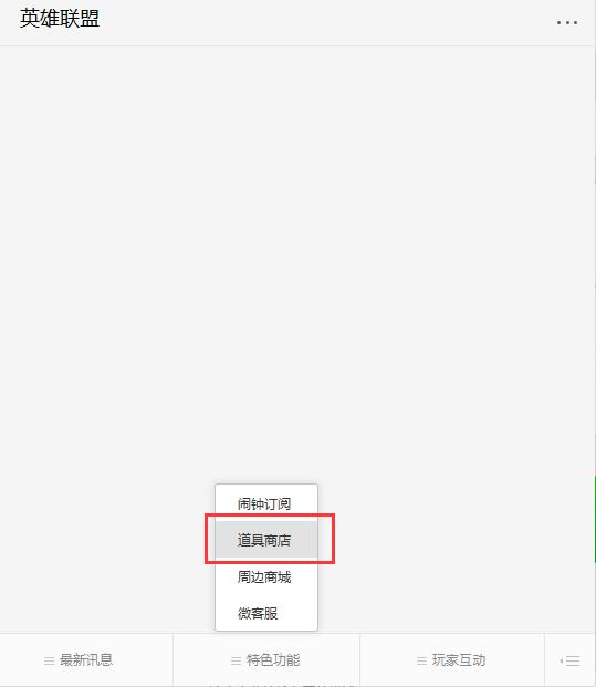 具体方法为,进入“英雄联盟”公众号后选择中间那栏的道具商店: