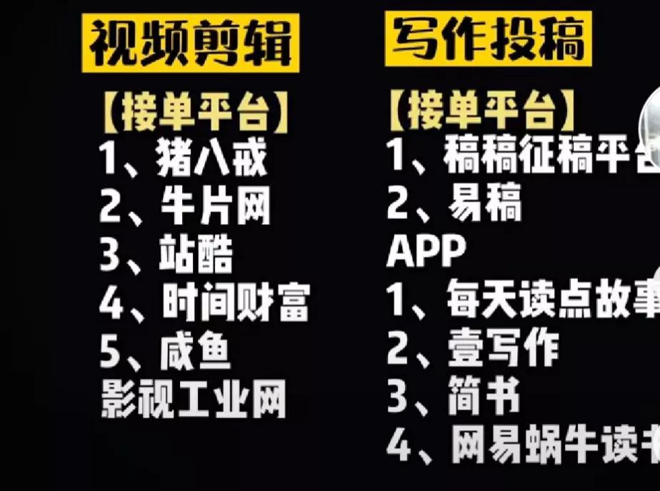 制作ppt;ps美工;视频剪辑;写作投稿;编程;拍摄;外语翻译