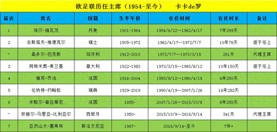 丹麦人埃贝-施瓦茨是欧足联历史上首任主席,从1954年到1962年,施瓦茨担任主席时间长达7年299天。