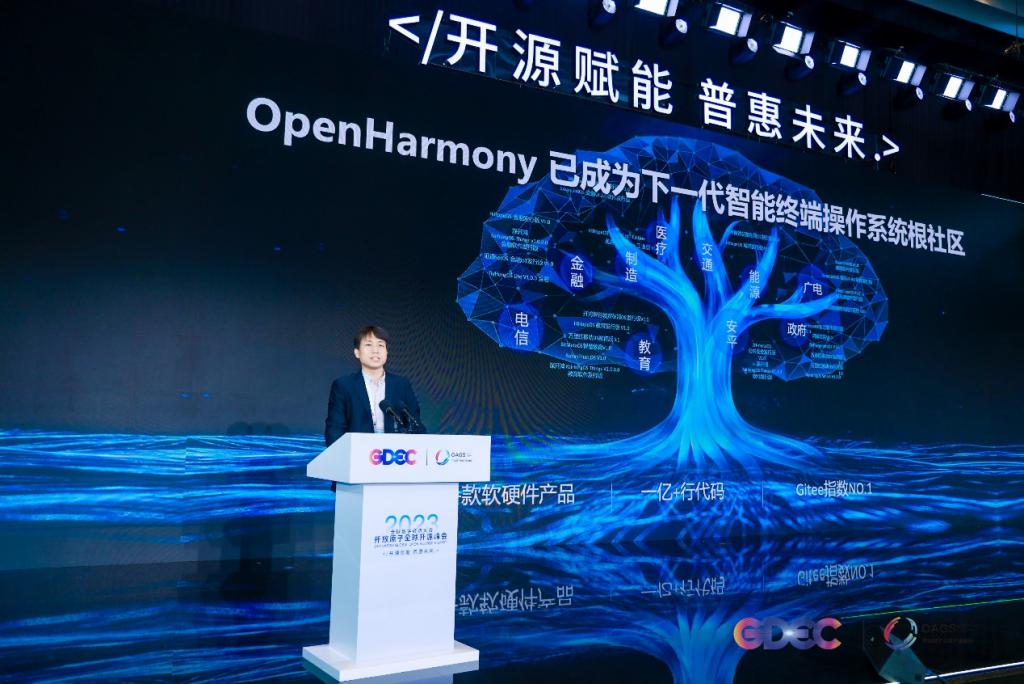 他透露,OpenHarmony 已成为下一代智能终端操作系统根社区,开源两年多以来,已有超过 150 家伙伴为 OpenHarmony 生态做出贡献,累计 17 家厂商 31 个软件发行版通过兼容性测评,超过 140 款商业设备落地,覆盖教育、金融、交通、数字政务、工业等多个行业。有 51 家共建单位、5100 多位共建者参与 OpenHarmony 代码贡献,累计贡献代码 1 亿多行,位居 Gitee 活跃度指数第一。