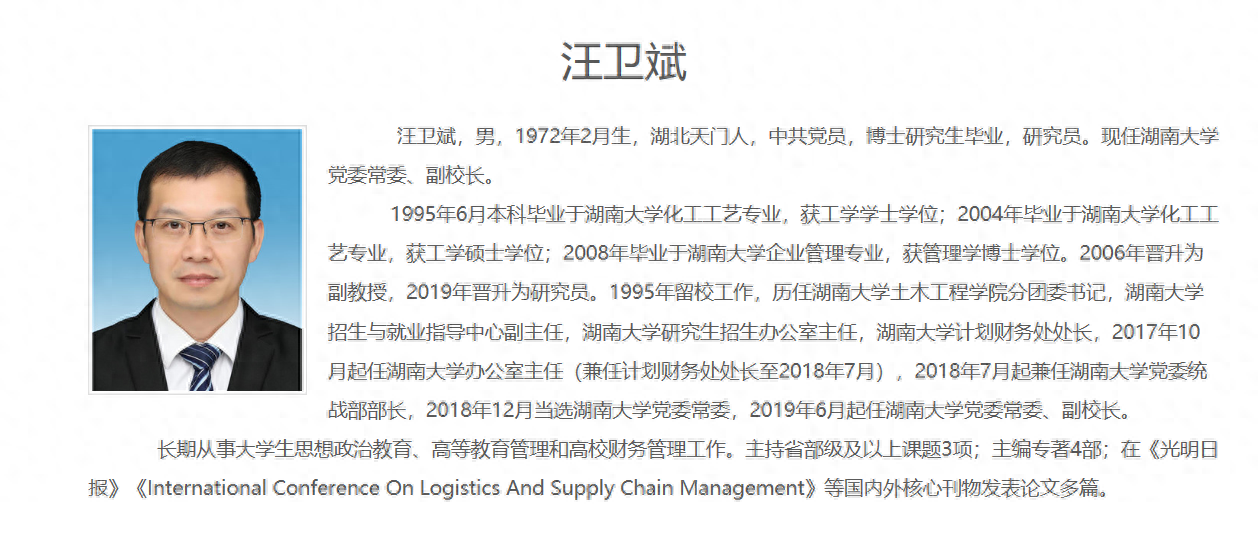 (湖南大学党委常委 副校长 汪卫斌)