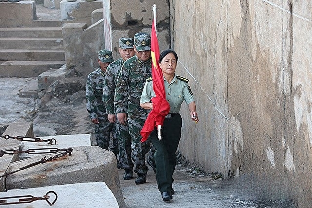 他们哪怕只有两个人,也要完成这场只有两个人的升旗仪式,五星红旗肃穆庄严,在这远离大陆的海岛上增添了一抹中国红。