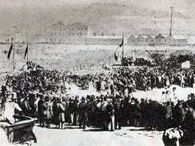 1830年,工业革命在法国兴起,掀起建筑铁路热潮,30~40年代,工人运动如里昂工人起义、共和运动、民主运动此伏彼起,最后汇为巨流。