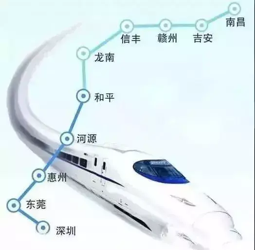 全程12个站点 ,依次赣州西—信丰西—龙南东—定南西—和平东—龙川西—东源—河源东—博罗北—惠州北—塘厦—深圳北。