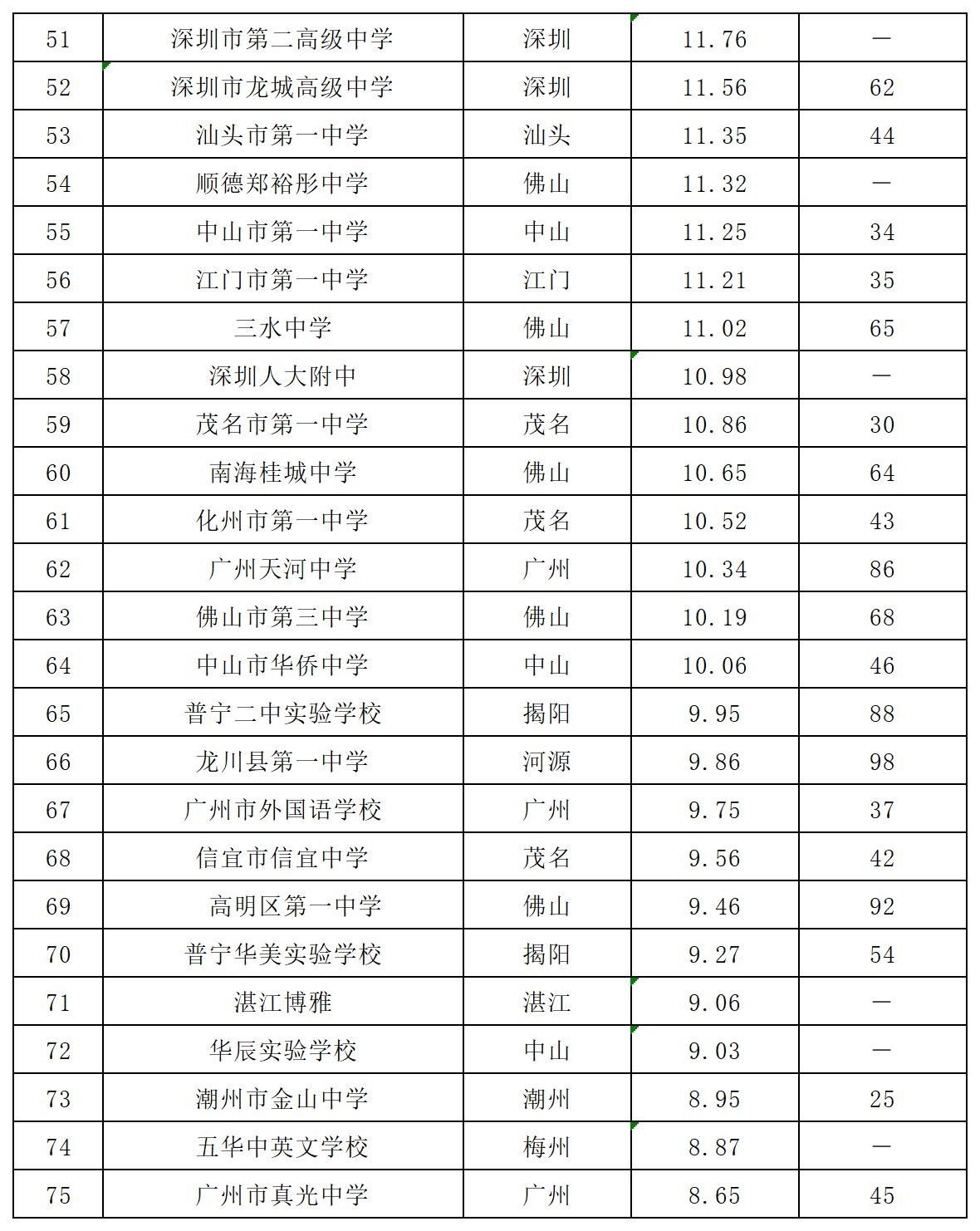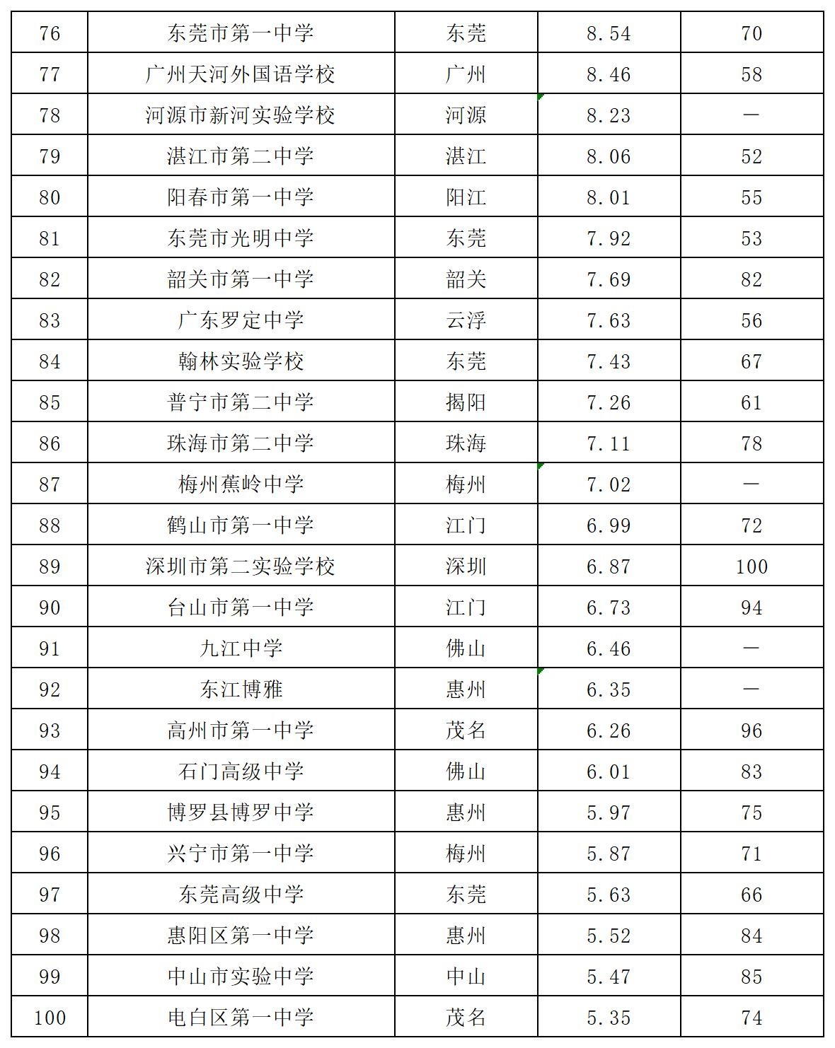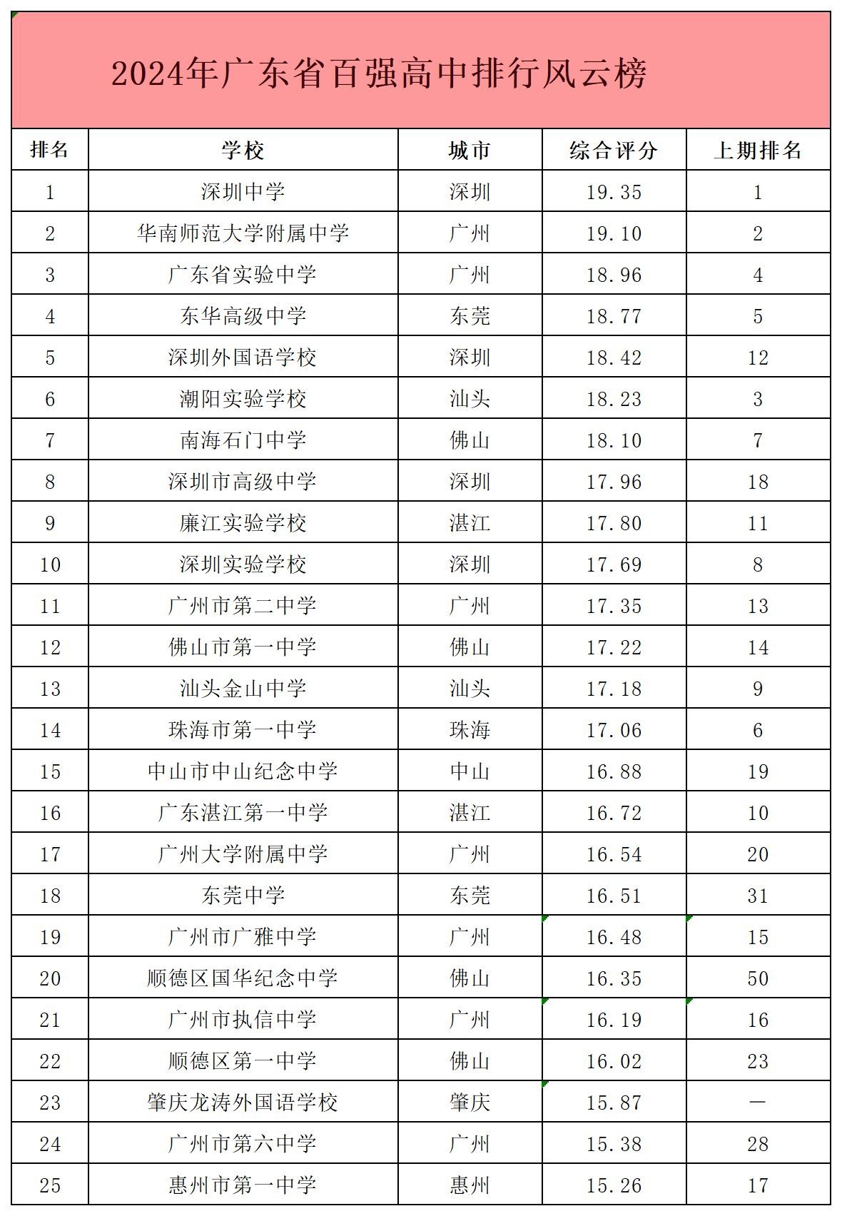 2024年广东省100强高中排行风云榜
