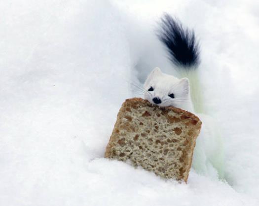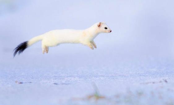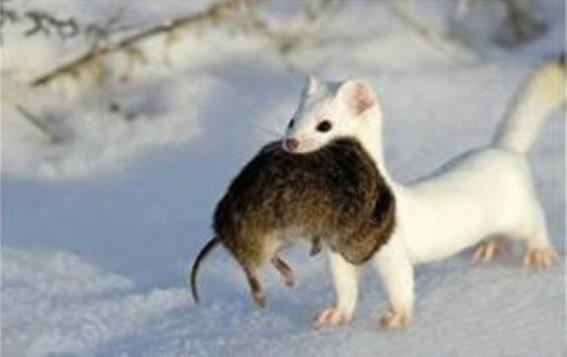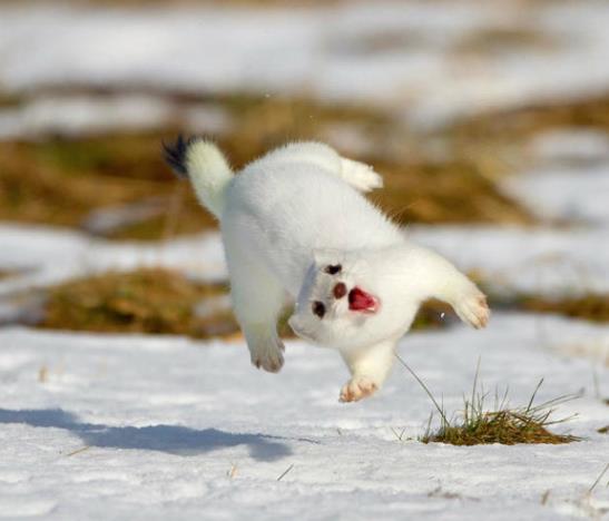 白鼬在逮兔子时,会像抽筋一样上窜下跳,而兔子会被这种动作深深吸引,一动不动目不转睛的盯着看,白鼬就这样接近兔子然后抓住它——虽然叫白鼬,不过在夏天的时候是褐色的,冬天才是白的。