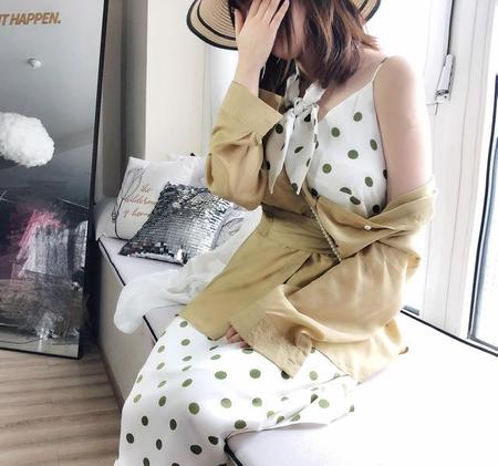 看到白底波点,我首先想到的一个词,就是恬静。白色总给人一种干净、素雅的感觉,加入波点元素之后,自带温柔属性,仿佛给人一种不食人间烟火的感觉。如果你性格比较安静,可以选择这一款波点裙,和你的性格特别搭。