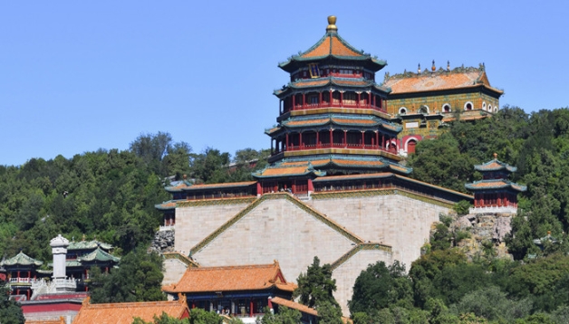 颐和园,中国清朝时期皇家园林,前身为清漪园,坐落在北京西郊,距城区15公里,全园占地3.009平方公里(其中颐和园世界文化遗产区面积是2.97平方公里),水面约占四分之三。与圆明园毗邻。它是以昆明湖、万寿山为基址,以杭州西湖为蓝本,汲取江南园林的设计手法而建成的一座大型山水园林,也是保存最完整的一座皇家行宫御苑,被誉为“皇家园林博物馆”。