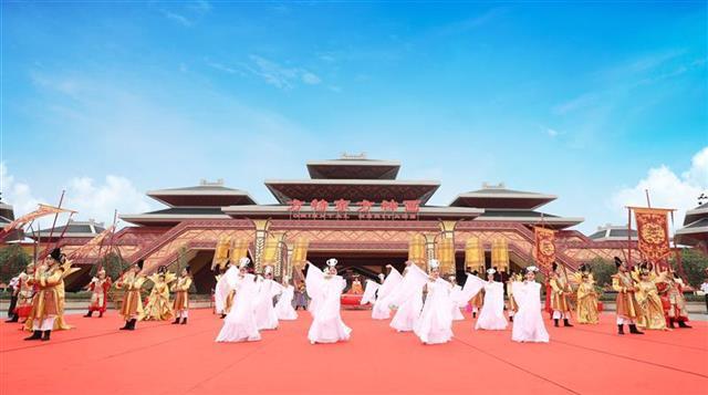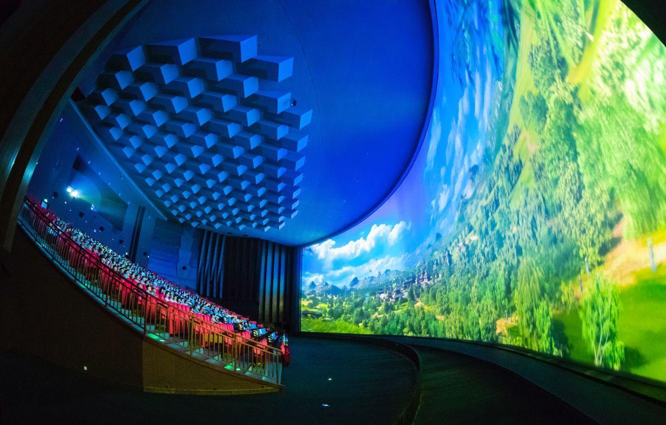 发布会现场,观众提前感受了根据传统文化创新演绎的大型情景项目《朝钟暮鼓》,以及由大量实景特效与立体影像相结合的大型主题游乐项目。比如,高15米、长56米、总面积840平方米的超级巨幕立体影院《九州神韵》,通过比高清电影还清晰8倍的大银幕,让大家穿越千年历史,徜徉在璀璨的华夏文明长河中。