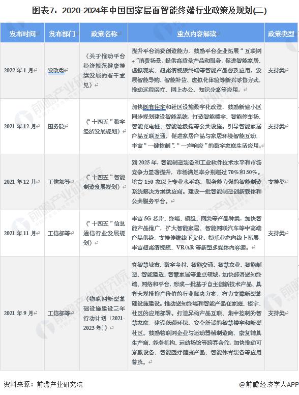 从政策环境上来看,我国对于智能终端行业也愈加重视,目前也在不断加大对智能终端行业的政策引导。其主要表现在对于整个智能终端产业链企业的政策优待以及对于智能终端行业的相关规划与推动。我国对智能终端的政策重点包括推动智能家居、智能可穿戴设备等细分领域发展,推动智能终端标准建设等。我国智能终端相关政策及规划如下表所示:
