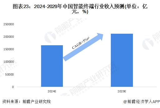 尽管当前智能终端行业受经济需求下行的影响,行业目前处于调整期,但预计未来随着国内政策的扶持以及 AI 技术的应用和产品创新对智能终端能力边际的不断突破,前瞻预测到 2029 年,中国智能终端市场规模将超 200000 亿元。