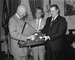 1959年,邝友良曾向时任美国总统的艾森豪威尔提议,将夏威夷改为州。艾森豪威尔通过并签署了邝友良提交的法案。同年8月21日,夏威夷正式成为美国的第50个州。那一年,邝友良还做了另一件大出风头的事儿。